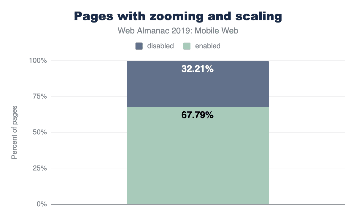 However, developers have misused this so much that almost one out of every three sites (32.21%) disable this feature, and Apple (as of iOS 10) no longer allows web developers to disable zooming. Mobile Safari simply ignores the tag. All sites, no matter what, can be zoomed and scaled on newer Apple devices, which account for over 11% of all web traffic worldwide!