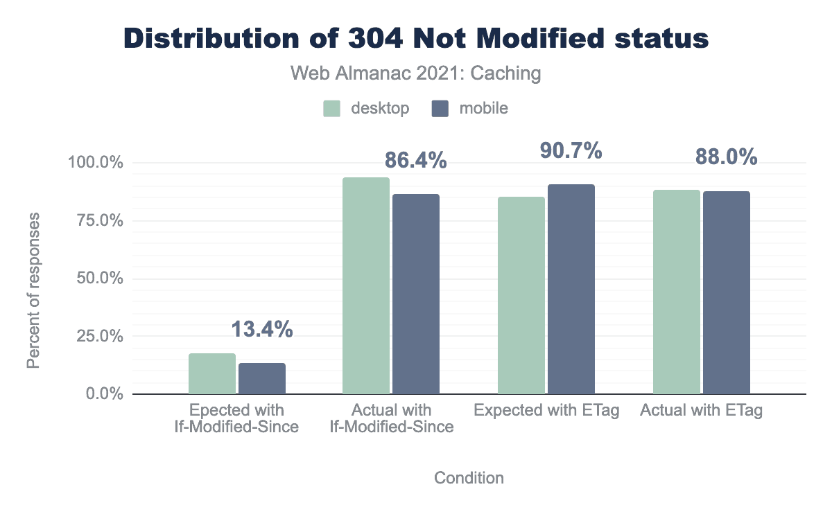 We saw the distribution of 304 responses increase by 7.7% for If-Modified-Since between 2020 and 2021. This shows that the community is capitalizing on these data savings.