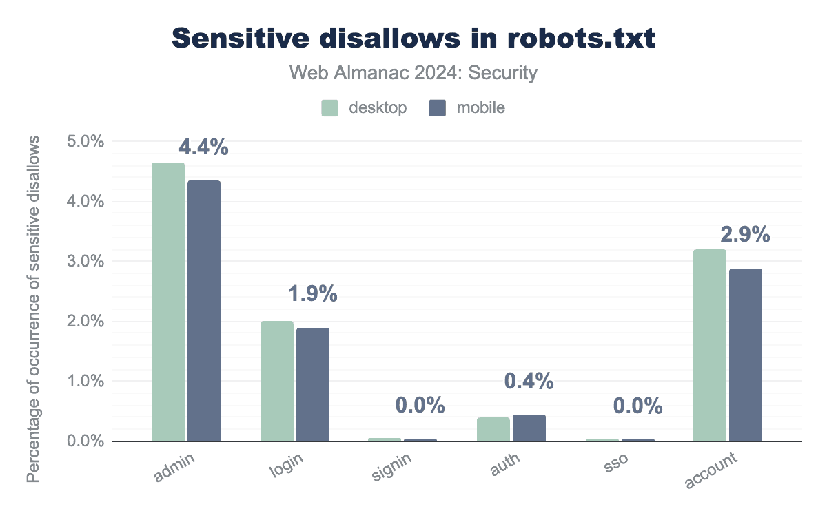 We see that around 4.3% of websites include at least one admin entry in their robots.txt file.